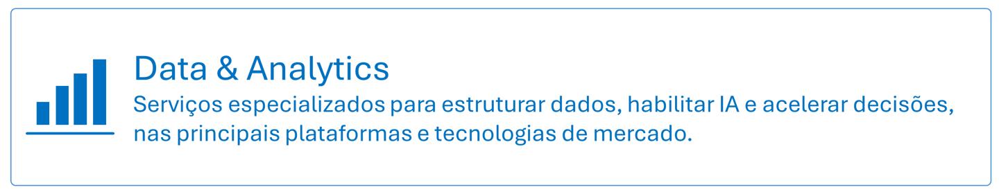 Da estratégia à execução, conectamos dados, tecnologia e pessoas para gerar valor real.